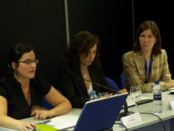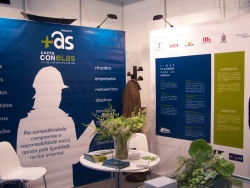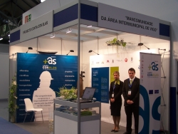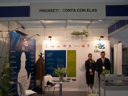 La gerenta del Proyecto, Ana GarcÃa, con el gerente de la Mancomunidad de Vigo ante el stand
